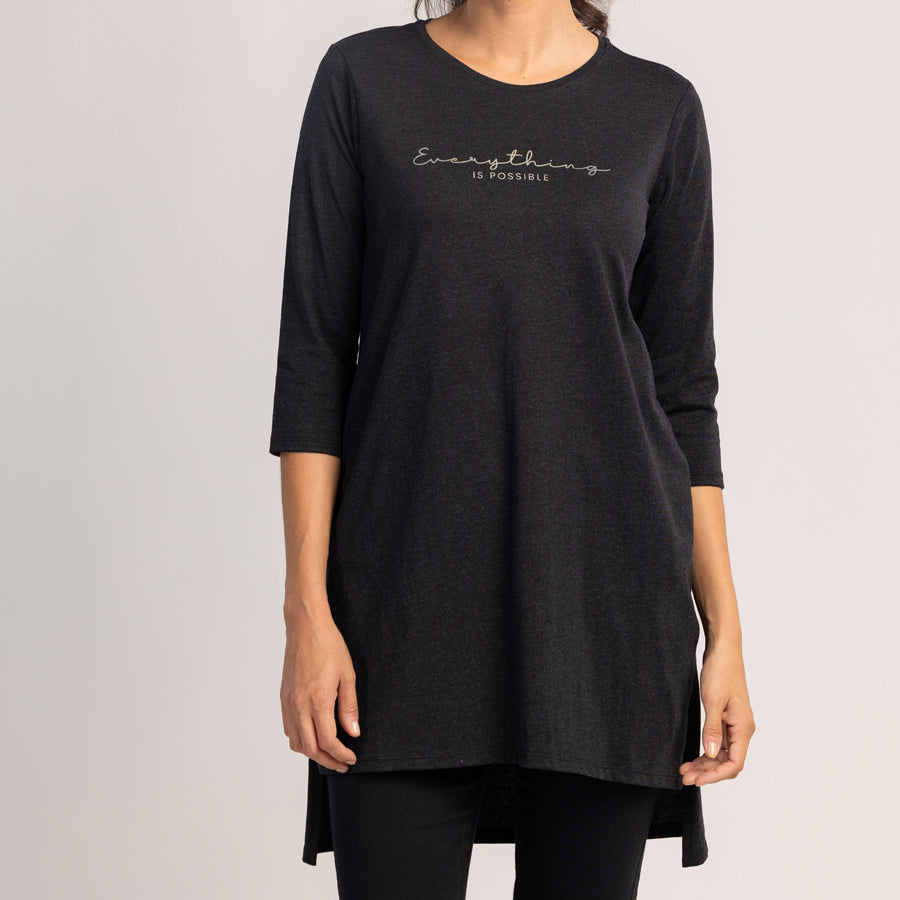 Ez a tunika sokoldalú: tökéletes önmagában, vagy leggingsszel vagy szűk nadrággal párosítva, így bármilyen alkalomra különböző stílusokat hozhatsz létre.