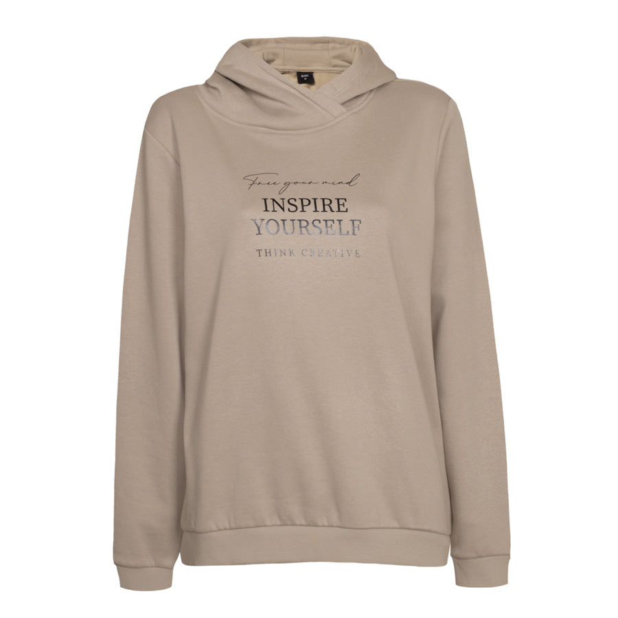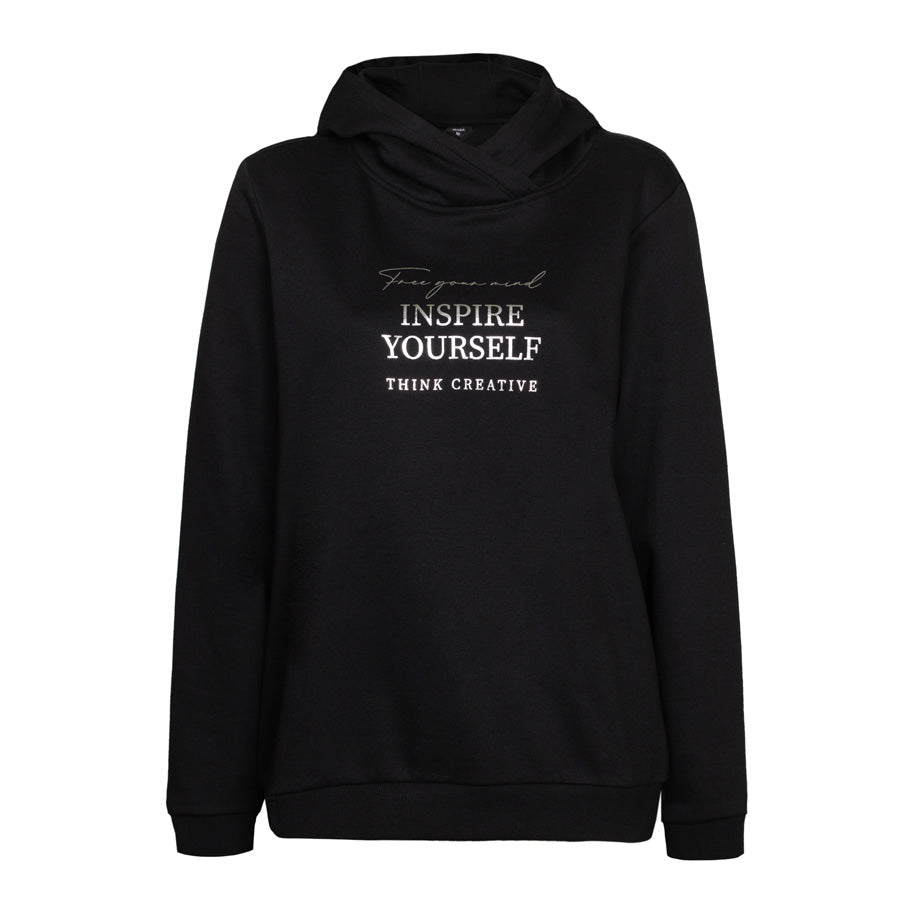 Ez a divatos szlogennel ellátott kapucnis pulóver tökéletes választás a hidegebb napokra és a pihentető pillanatokra. Puha pamutkeverékből készült, a belső része kellemesen szőrös, így minden viseléskor meleg és puha érzetet biztosít.